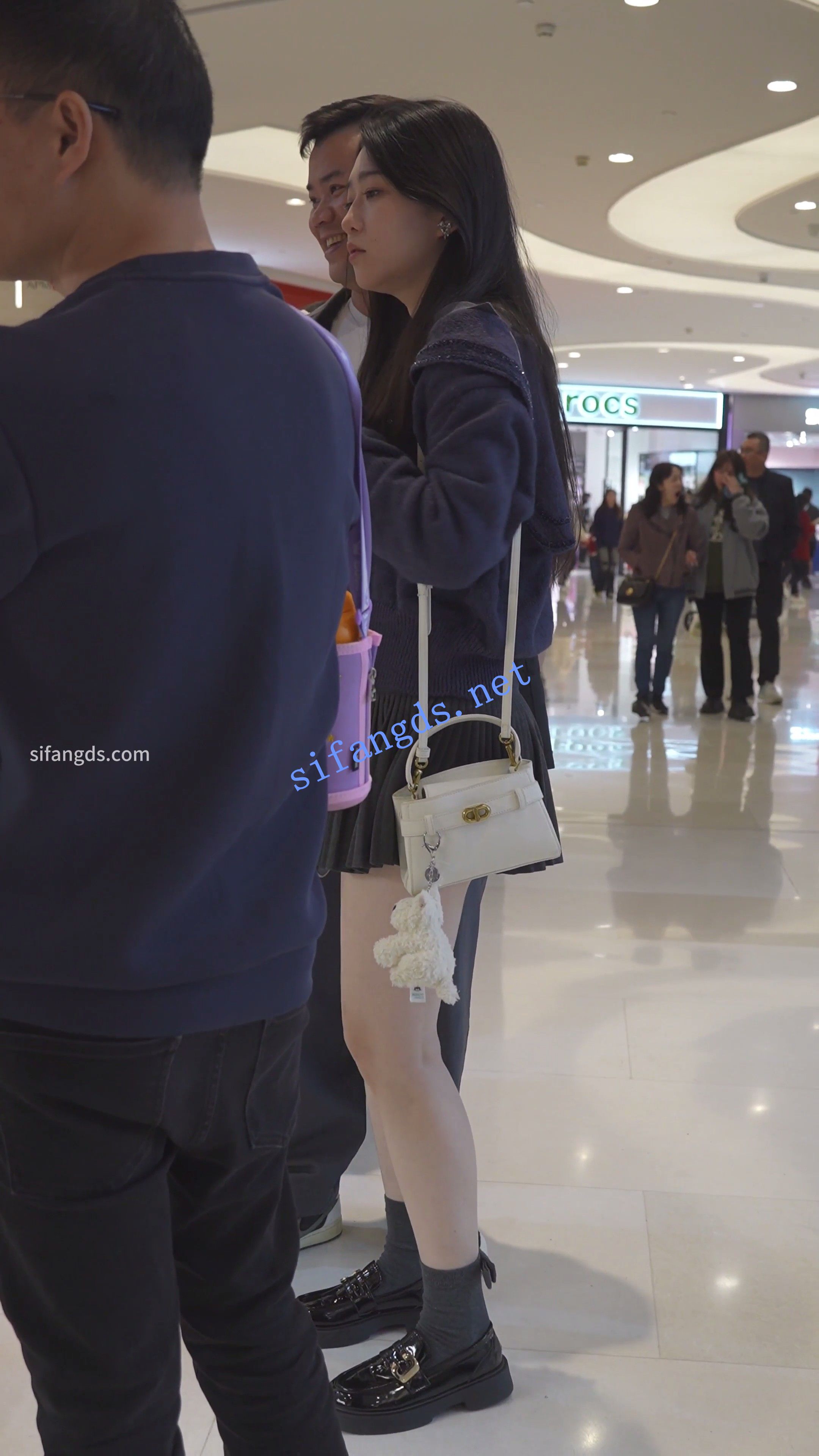 (BC-AA-587)百褶裙美女逛商场..细内衬挡不住微透蕾丝边内裤
